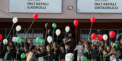 Vanlı çocuklar Filistin'in özgürlüğü için gökyüzüne balon uç..