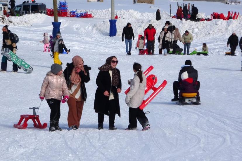 Van'ın Gevaş ilçesinde bulunan Abalı Kayak Merkezi, okulların yarıyıl tatiline girmesiyle birlikte özellikle çocuklar ve ailelerin akınına uğradı.