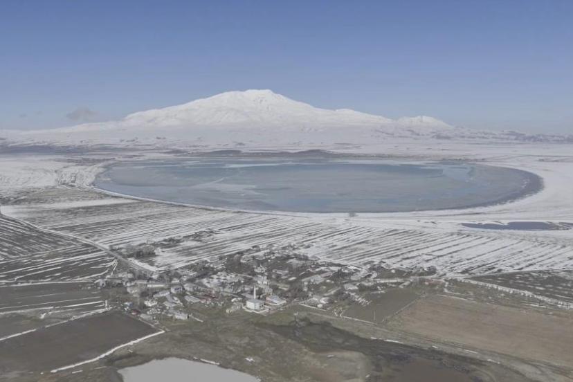 Bitlis'in Adilcevaz ilçesinde havada çekilen görüntülerde Van Gölü'nün güzelliğiyle Süphan Dağı'nın ihtişamı ve kuş cenneti Arin Gölü aynı karede buluştu.