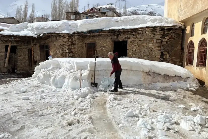 Van'ın Bahçesaray ilçesine bağlı Çatbayır Mahallesi'nde yaşayanlar, kar kütlelerini küreklerle temizlemeye çalışıyor. Mahalle sakinleri, kar yığınlarını güçlükle temizlediklerini söyledi.