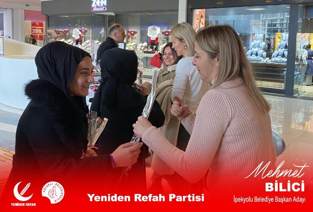 Yeniden Refah Partisi (YRP) İpekyolu Belediye Başkan Adayı Mehmet Bilici, 8 Mart Dünya Kadınlar Günü nedeniyle karanfil dağıttı.