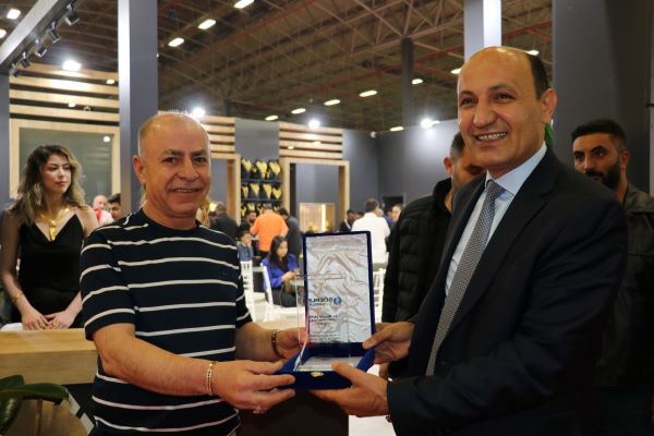 Akabe Kuyumculuk sahibi Mustafa Şahin'e plaket takdim eden Başkan Süer, daha sonra beraberindekilerle birlikte fuar alanını gezdi.
