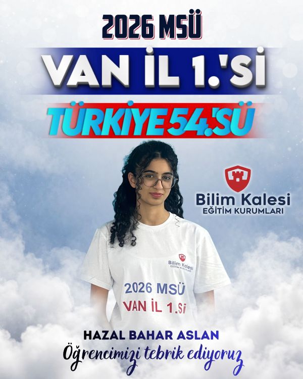 2026 Milli Savunma Üniversitesi sınavı sonuçları 24 Mart 2026 tarihinde açıklandı. Açıklanan sınav sonuçlarına göre; Türkiye 54'üncüsü, Türkiye 60'ıncısı, Türkiye 69'uncusu, Türkiye 81'incisi ve Van il birincisi Hazal Bahar Aslan'ın öğrencisi olduğu Bilim Kalesi Eğitim Kurumu, başarısıyla göz kamaştırdı.
