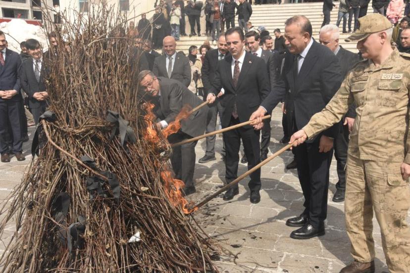 Kültür ve Turizm Müdürlüğünün bahçesinde Vali Karakaya, beraberindekilerle nevruz ateşini yaktı.
