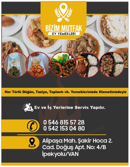 İki kattan oluşan işletmede çocuk oyun alanı ve aile salonunun yer aldığını ifade eden Özügüzel, “Düğün, taziye, toplantı, şirket veya kurum özel davetleriniz için bizi arayabilirsiniz. Yöresel yemeklerin de sunulduğu işletmemizde 4 çeşit etli menümüz sadece 300 TL olup, ev ve işyerlerine servisimiz mevcuttur. Adres Alipaşa Mahallesi, Şakir Hoca 2. Cad. Doğuş Apartmanı No: 4/B İpekyolu olup, tüm halkımızı eşsiz lezzetlerimizden tatmaya bekliyoruz. İletişim numaralarımız 0 546 815 57 28 veya 0 542 153 04 80 ” ifadelerini kullandı.