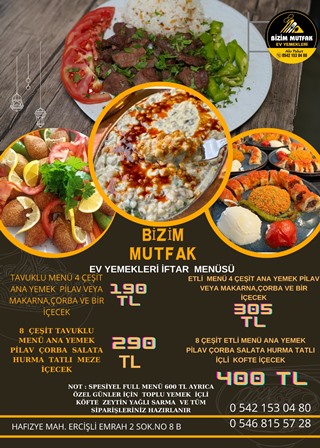 Kazım Karabekir Caddesi ile Sıhke Caddesi arasında yer alan Bizim Mutfak Ev Yemekleri işletmesi, yardımlaşmanın, paylaşmanın ve dayanışmanın yoğun yaşandığı mübarek Ramazan ayının bereketini, Van’da yaşayan gurbetçi üniversite öğrencileriyle paylaşıyor. Ramazan ayı nedeniyle Van Yüzüncü Yıl Üniversitesinde eğitimlerini sürdüren 150 üniversite öğrencisine ücretsiz iftar yemeği sunacak olan Bizim Mutfak Ev Yemekleri işletmesi, aynı zamanda hayırseverler ile öğrencileri iftar sofrasında buluşturma imkanı sunuyor.