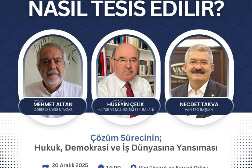 Van Ticaret ve Sanayi Odası (Van TSO) tarafından "Türkiye’de Barış Nasıl Tesis Edilir?" söyleşisi düzenlenecek.