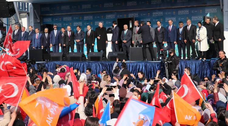 “Kazanmak için kaybettirmek için çalışma mantığını devreye soktular. İşte bu milletin aklıyla alay ettiler. İşin içine deste deste paraların da girmesiyle bu oyun iyice kirlendi. Bağırarak çağırarak, yalan üstüne yalan söyleyerek, arsızca etrafa saldırarak, kibirle milleti aşağılayarak kimse kendini bu kirden arındıramaz. Milletimiz bu sinsi ve kirli oyunların hesabını 31 Mart‘ta sandıkta soracaktır. Utanma bilmeyen suratlara milli irade tokadını vuracaktır. Bugün burada milli irade tokadının ilk seslerini duyuralım?”