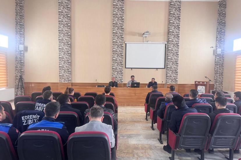 Edremit Belediyesi Eşbaşkanı Cemil Komi ve Eşbaşkan Yardımcısı Zana Karakaya, belediye bünyesinde görev yapan zabıta personeli ile bir araya gelerek yürütülen çalışmalar ve gelecek dönem projeleri hakkında toplantı gerçekleştirdi.