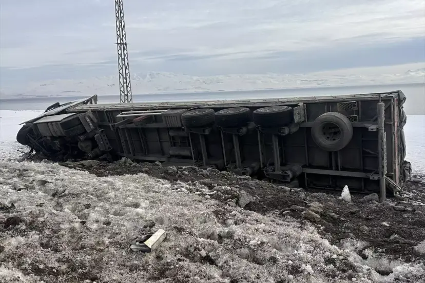 Erciş-Van kara yolunun Kuzluca mevkisinde sürücüsü öğrenilemeyen 23 AEG 37 plakalı tır, yoldan çıkarak devrildi.