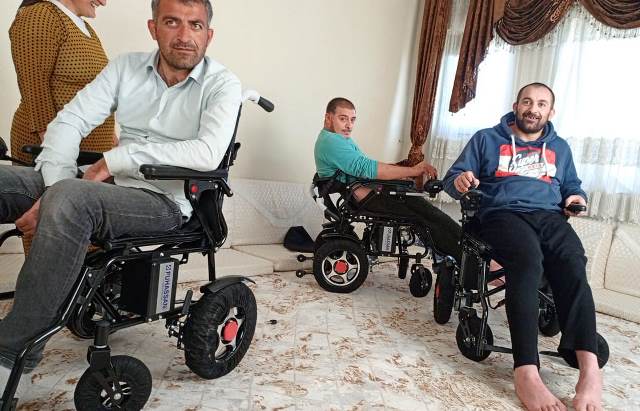 Yüksekova’da yaşayan ve belden aşağı felçli olan Fatih, Eşref ve Macit Çelik isimli üç kardeş, yıllardır sırt üstü yatalak bir şekilde yaşamlarını sürdürüyordu. Gittikleri her yerden eli boş dönen aile, son çare olarak Vanlı Amcan Yardımlaşma ve Dayanışma Derneğinden yardım istedi. Çağrıya sessiz kalmayan dernek yetkilileri, kısa sürede aldıkları akülü sandalyeleri üç kardeşe teslim etti.