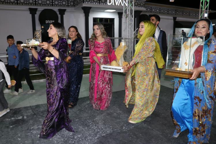 Van’da düzenlenen aşiret düğününde gelinin takılarını 5 kişi taşıdı.