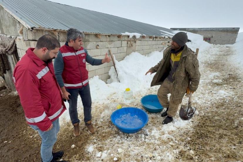 Muradiye İlçe Tarım ve Orman Müdürü Harun Altunkaynak, "Şu anda ilçemize bağlı Devetaş köyünün Sabunsata mevkisindeyiz. Buraya keçi yetiştiricisi bir üreticimizin hayvanlarının su ihtiyacını gidermek amacıyla geldik. Sert hava muhalefeti nedeniyle suları kesilmiş ve hayvanlar susuz kalmıştı. Biz de bu eksikliği gidermek amacıyla ekip arkadaşlarımızla beraber üreticimize su getirdik. İnşallah eksiklerini gidermeye devam edeceğiz" dedi.