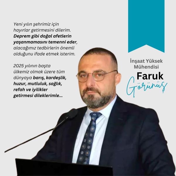İnşaat Yüksek Mühendisi Faruk Görünüş, yeni yıl nedeniyle kutlama mesajı yayımladı.