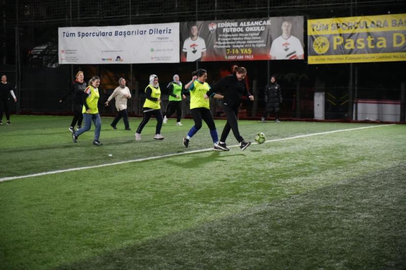 Edirne'de 8 Mart Dünya Kadınlar Günü çerçevesinde düzenlenen anlamlı etkinlikte kadınlar dostluk maçı yaptı.