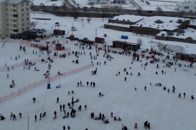 Kente merkezindeki El Aman Kayak Merkezi'nde kar yağışının ardından oluşan elverişli pist şartları; kayak, kızak ve snowboard tutkunlarını merkeze çekti. Aileleriyle birlikte gelen ziyaretçiler, hem kayak yaptı hem de kış manzarasının keyfini çıkardı. Kayak pistlerinde yaşanan yoğunluk havadan görüntülenirken, ortaya renkli ve hareketli görüntüler çıktı.
