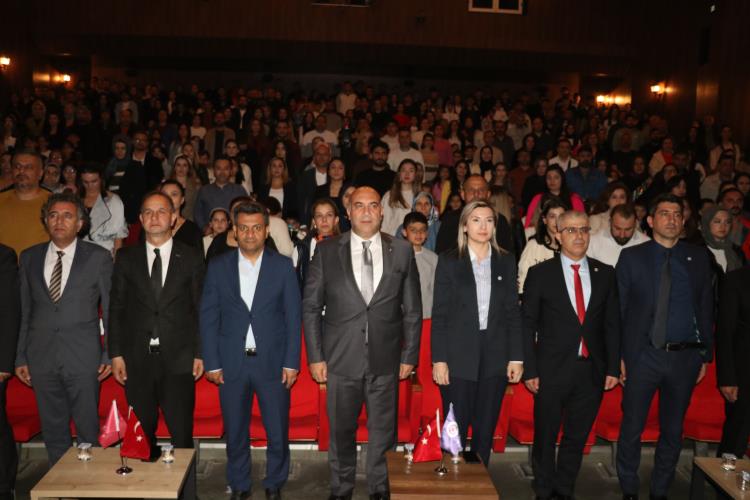 Saygı duruşu ve İstiklal Marşı’nın okunmasının ardından bir konuşma yapan İl Milli Eğitim Müdürü Nurettin Aras, çocukların küçük yaşlardan itibaren akademik gelişimlerini çok önemsediklerini vurgulayarak, “Küçük yaşlardan itibaren çocuklarımızın sosyal becerileri, sosyal yetenekleri, kendilerini ifade edebilmeleri, sahneye çıkmaları, şiir okumaları, sporla meşgul olmaları, bir enstrümantal çalmaları yani kısaca sosyal, kültürel aktivitelerde yer almalarını, teşvik edilmelerini oldukça önemsiyoruz. Bunun da özellikle özel okullar başta olmak üzere örnek olmasını arzu ediyorum” dedi.