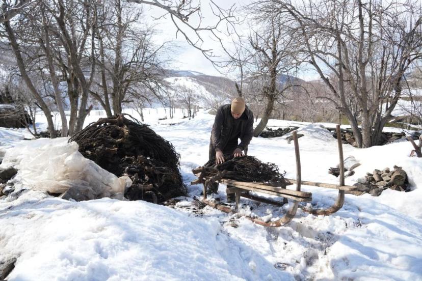 Alaniçi köyünde hayvancılıkla uğraşan besici Murat Gürtürk, çocukluğundan bu yana ailesiyle birlikte geven otu topladıklarını anlattı. Evin önünde hayvanları için gevenleri doğrayan Gürtürk, "Alaniçi köyünde yaşıyorum. 56 yaşındayım. Hatırladığım günden bu yana sürekli bu işle uğraşıyoruz. Geven otunu dağdan çıkarıyoruz. Orada ateş yakıyoruz, dikenlerini orada yakıyoruz, yine orada topluyoruz. Daha sonra kar yağınca kızaklarla köye indiriyoruz. Ahırın önüne getirip oradan küçük küçük doğrayıp davarlara yediriyoruz" dedi.