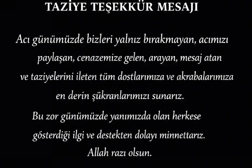 Özaraz ailesinden taziye teşekkür mesaji