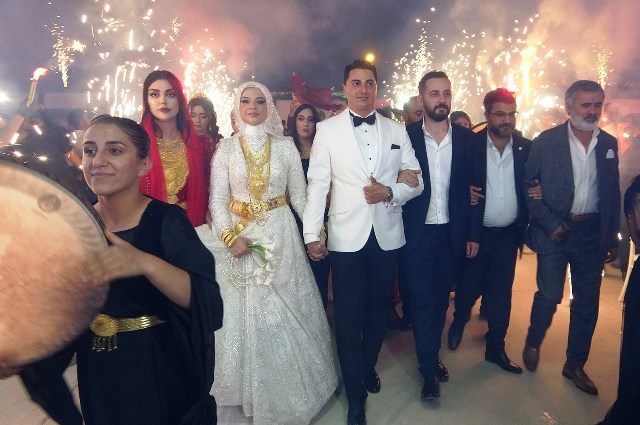 Kürtçe şarkılar eşliğinde uzun halayların çekildiği düğün töreni, gecenin ilerleyen saatlerine kadar devam etti.