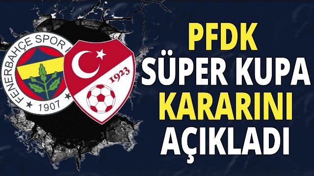 PFDK, Fenerbahçe'nin Süper Kupa karşılaşmasında sahadan çekilmesi nedeniyle 3-0 hükmen mağlup sayılmasına karar verdi. Sarı-lacivertli ekibe ayrıca 4 milyon TL para cezası verildi.