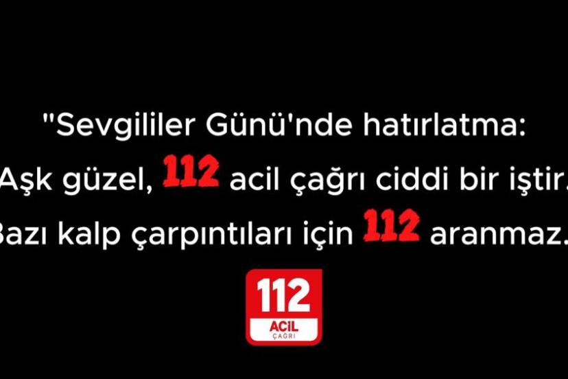 112 Acil Çağrı Merkezi yetkilileri, "Sevgililer Gününde Hatırlatma" uyarısı yaparak, "Aşk güzel, 112 Acil Çağrı ciddi bir iştir. Bazı kalp çarpıntıları için 112 aranmaz" notu düştü.