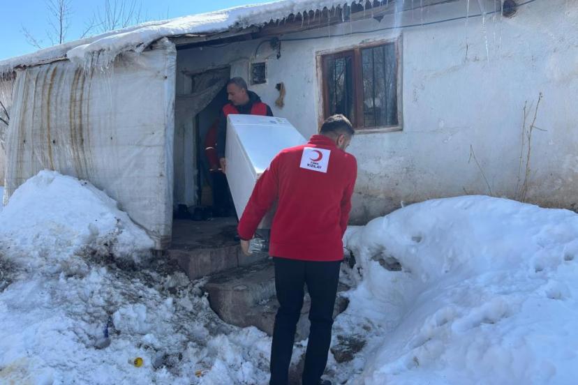 Türk Kızılayı Muradiye gönüllüleri, yalnız yaşayan yaşlı bir vatandaşa buzdolabı desteğinde bulundu