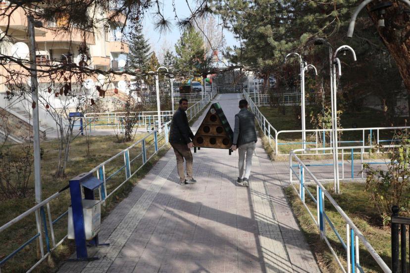Tuşba Belediyesi, hava sıcaklıklarının düşmesiyle birlikte sokakta yaşayan kedilerin barınma ihtiyacını karşılamak amacıyla ilçenin farklı noktalarına kedi evleri yerleştirdi.