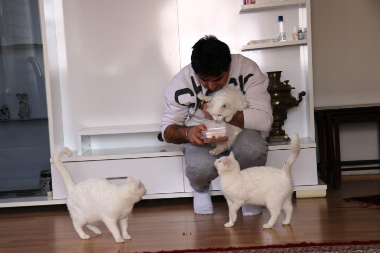 Van’ın İpekyolu ilçesinde yaşayan Fatih Binici isimli vatandaş, Van kedilerinin neslini kurtarmak için evinin kapılarını açtı.