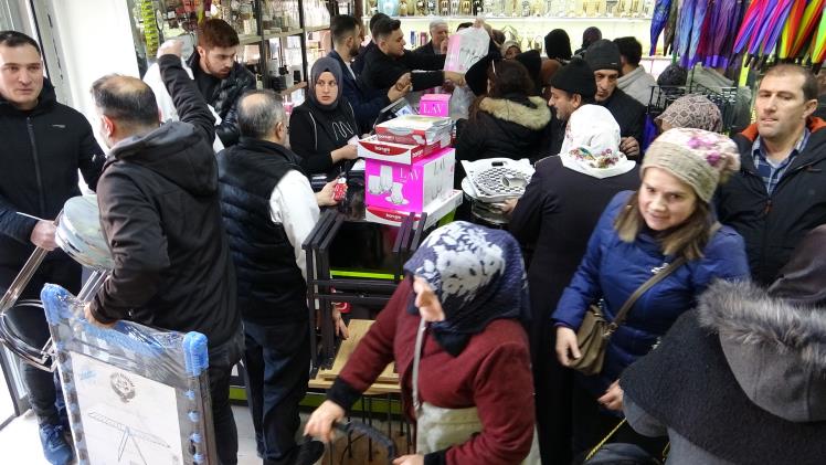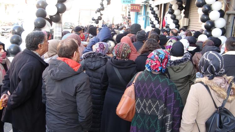Van'da yeni açılışı gerçekleştirilen bir alışveriş mağazasının uygun fiyatlı satışlarını duyan yüzlerce vatandaş izdihama neden oldu.
