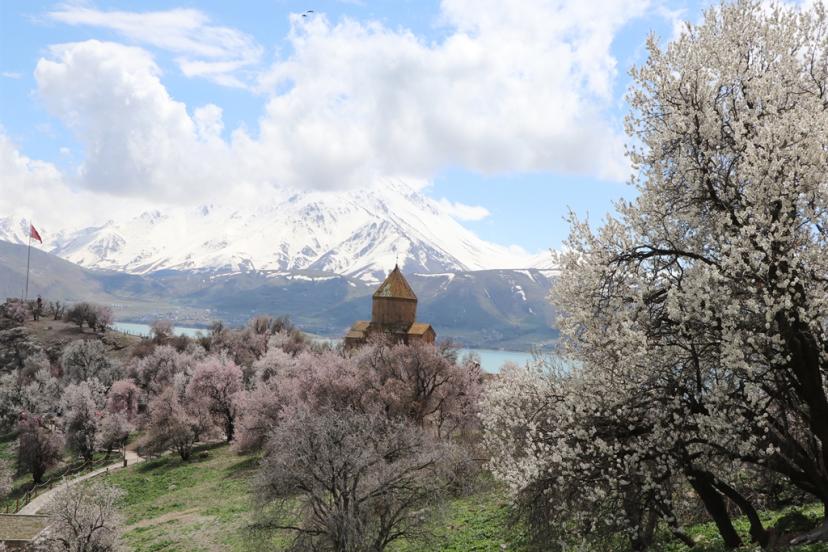 Van Gölü'nün ortasında yer alan Akdamar Adası'nda badem ağaçlarının çiçek açmasıyla birlikte doğa canlandı. Gevaş ilçesinden teknelerle yaklaşık 20 dakikada ulaşılan ada, baharda renk cümbüşüne büründü. Van Gölü'nün maviliği ve çevredeki dağların zirvelerinde kalan kar örtüsüyle birleşen manzara güzel görüntüler oluştu. Adaya gelen yerli ve yabancı turistler, eşsiz manzara eşliğinde bol bol fotoğraf çektirerek bu anları ölümsüzleştirdi.