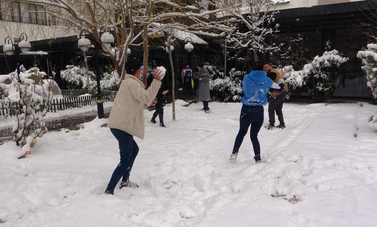 Türkiye'nin bir bölümünü etkisi altına alan kar yağışı, kimileri için çileye dönerken kimileri için de eğlence kaynağı oldu. Van'da dün akşam itibariyle yağan ve 560 yerleşim yolunu ulaşıma kapatan kar yağışı nedeniyle il genelinde eğitime bir gün ara verildi. Bazı uçak seferlerinin rötar yapmasına ve İstanbul'a sefer yapacak uçakların ise iptal edilmesine neden olan kar yağışı, esnafa ise eğlence kaynağı oldu. Müşterilerin olmamasını fırsat bilen esnaf, kartopu oynayarak karın keyfini çıkardı.