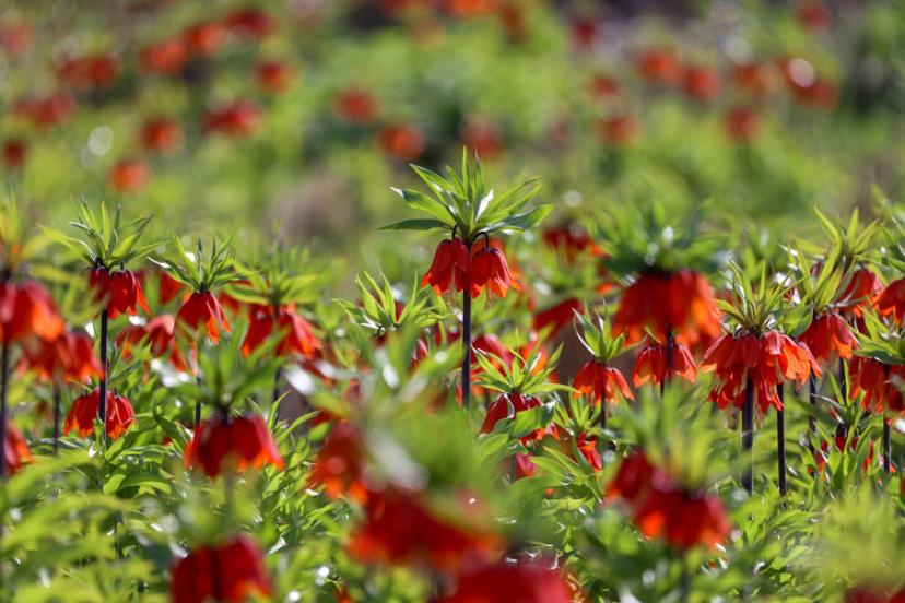 Van'ın Gevaş ilçesindeki yetişen ve halk arasında "ağlayan gelin" veya "hüzün çiçeği" diye bilinen ters laleler güzellikleriyle doğayı renklendiriyor.