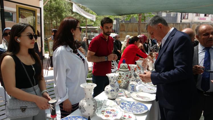 İpekyolu Halk Eğitim Merkezi Müdürlüğü bahçesinde düzenlenen sergide açılış konuşmasını yapan İpekyolu Halk Eğitim Merkezi Müdürü Arif Yılmaz, halk eğitim merkezlerinin sadece bilgi aktaran, beceri kazandıran kurumlar olmadığını ifade ederek, "Halk eğitim, misyonu gereği toplumun her kesimine hitap eden, her alanda eğitim ihtiyacı duyan, eğitimini tamamlamak isteyen, becerisini geliştirmek isteyen her vatandaşımıza ufuklar açan, imkanlar sunan bir yaygın eğitim kurumudur. Halk eğitim, sadece kurslar açan kurumlar değildir. İnsanların yaşamlarında yeni ufuklar açan, onların kendi ayakları üstünde durmasını sağlayan, özellikle bayanların kendi becerilerini geliştirerek, toplum içerisinde ciddi anlamda ekonomiye katkı sunan bireyler olması yönünde çalışmalar yapıyor. Sergimiz çok zengin bir sergi. Sergimizde giyimden bilişim alanına, geleneksel sanatlardan çiniciliğe kadar her alanda örnek teşkil eden çalışmalarımız var. Bu çalışmalar usta öğreticilerimizin, öğretmenlerimizin yıl boyunca el emeği göz nuru ile ortaya çıkardıkları ve sanatsal değeri olan çalışmalardır. Ben kendilerini kutluyor, sergimizin hayırlara vesile olmasını diliyorum" dedi.