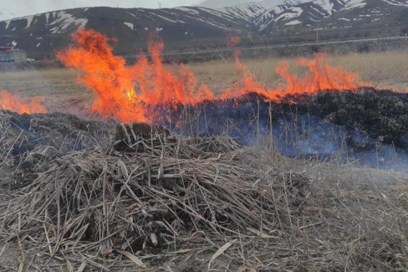 Van'ın Gevaş ilçesinde anız yangını