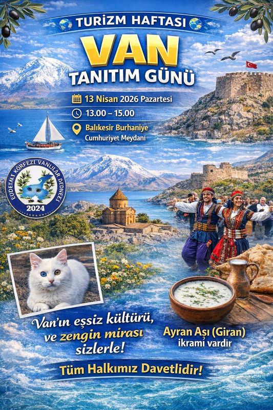 Balıkesir Edremit Körfezi Vanlılar Derneği, bu yıl da Turizm Haftası etkinlikleri kapsamında Burhaniye ilçesinde “Van Tanıtım Günü” düzenlemeye hazırlanıyor. Düzenlenecek etkinlikle Van’ın zengin kültürel mirasının daha geniş kitlelere ulaştırılması hedefleniyor.