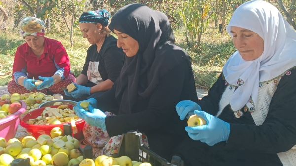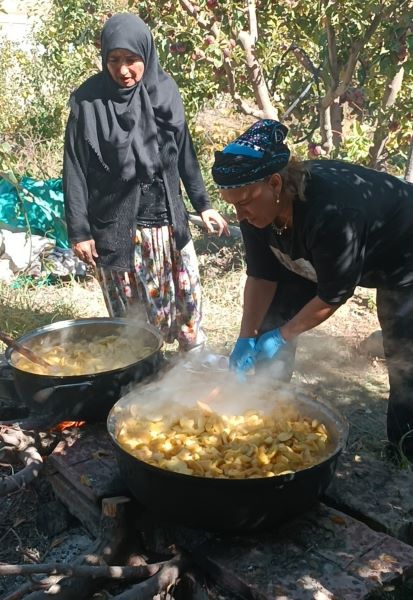 Yaklaşık bir haftadır bahçede topladıkları elmaları marmelat ve reçele dönüştürdüklerini vurgulayan, “Bir haftadır buradayız. Önce meyveleri topladık, yıkadık. Daha sonra marmelat, reçel ve sirke için ayırdık. Küçüklerini sirkeye yatıracağız, büyüklerini ise reçel ve marmelat için ayarladık. Şimdi kaynatmaya başladık. Kaynadıktan sonra onu püre haline getireceğiz ve şekerle buluşturacağız. İyice odun ateşinde pişirdikten sonra paketleyip satışa sunacağız. Tamamen kendi el emeğimiz. Herhangi bir katkı maddesi yok” ifadelerini kullandı.