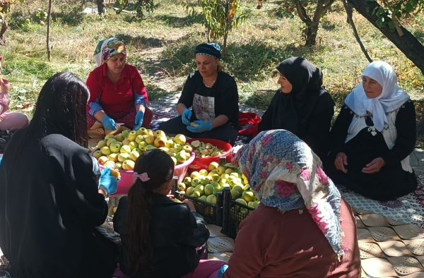 Van’da evlerinde çeşitli gıda malzemeleri üreten kadınlar, 2023'te bir araya gelerek kooperatif kurmaya karar verdi. Edremit Şamran Kadın Girişimci Üretim ve İşletme Kooperatifini kuran kadınlar, üretimlerini kooperatif çatısı altında sürdürmeye başladı. Yaklaşık üç yıldır faaliyetlerini sürdürdüklerini belirten Edremit Şamran Kadın Girişimci Üretim ve İşletme Kooperatifi Başkanı Nadide Göz, kooperatif bünyesinde 9 kadının aktif olarak yer aldığını söyledi. Kooperatif bünyesinde birçok ürünü satışa sunduklarını aktaran Göz, “Şuanda kooperatifimizde sirke, elma başta olmak üzere reçel çeşitleri, turşu çeşitleri ve marmelatlar var. Ayrıca ev yapımı baklava ve yemek çeşitlerimiz de yer alıyor. Şuanda da elma marmelatı ve reçelini yapıyoruz” dedi.