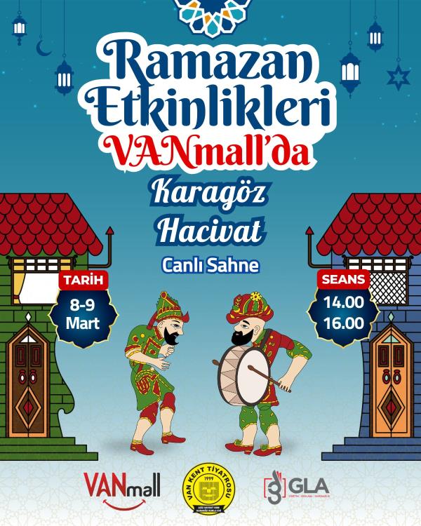 Vanmall Alışveriş Merkezinde Ramazan ayı etkinlikleri başlıyor. Ramazan ayı boyunca ziyaretçilerine kültürel etkinlikler sunmaya hazırlanan Vanmall Alışveriş Merkezi, Hacivat-Karagöz canlı sahne gösterisi ile unutulmaz bir deneyim yaşatacak. GLA Yönetim Kiralama A.Ş. tarafından yönetilen Vanmall, Ramazan atmosferini geleneksel Türk tiyatrosunun en sevilen karakterleriyle canlandıracak.