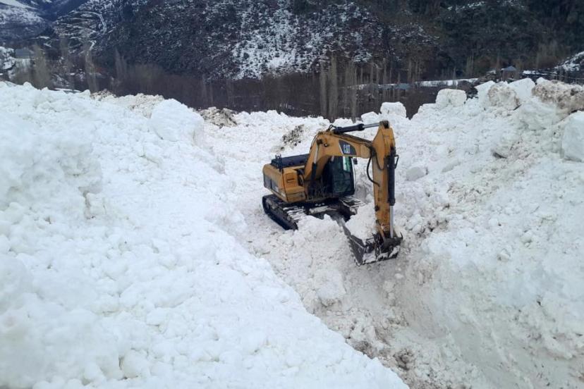 Hakkari'nin Yüksekova ilçesine bağlı Yeşiltaş köyünde düşen çığ meyve bahçelerine zarar verirken, ekipler köy yolunu açmak için seferber oldu.